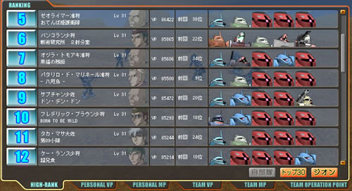 アユル・シモツキ隊がジオン軍ハイランカーの少将を撃破。自分の名前がテロップで流れているの久々に見た気がする。